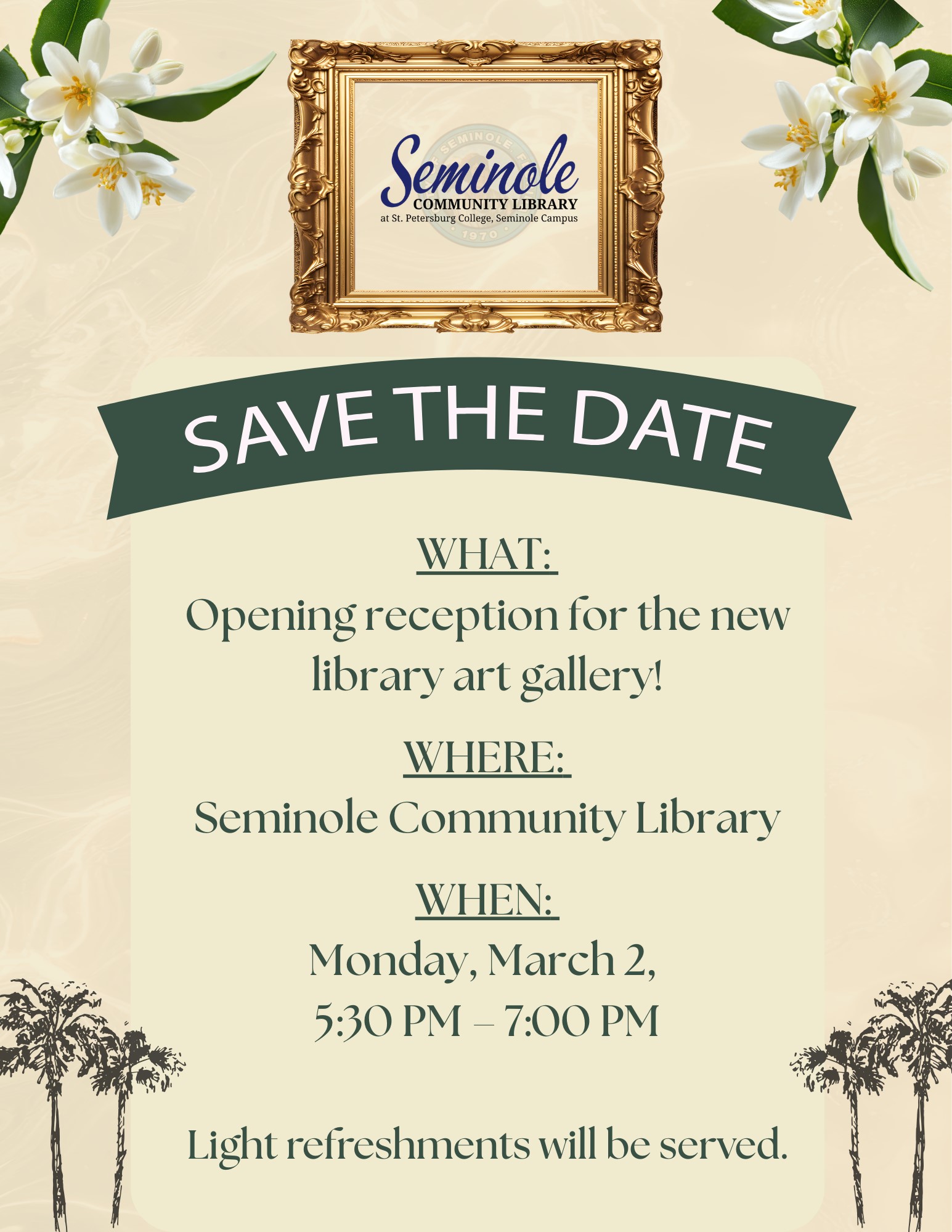 Location: Seminole Community Library, 9200 113th Street, Seminole, FL 33772